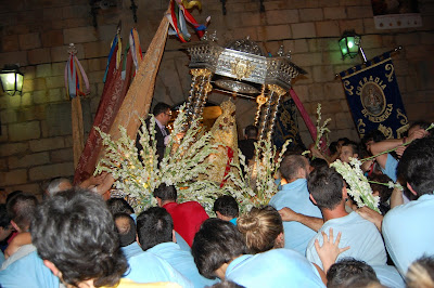 Si la Romería es más multitudinaria y estrepitosa, la fiesta de la Aparición, con la compañía de la noche serena y estrellada, adquiere tintes más íntimos, más solemnes, y con una fervorosidad especial. Los actos de la Aparición comenzaron, como viene siendo tradicional el 11 de agosto, el pasado jueves, con la presentación de la Matriz ante la Virgen, acto muy emotivo y de gran belleza plástica, que precedía a las de las asociaciones parroquiales y cofradías filiales por orden antigüedad. Destacan en este acto las ofrendas tan tradicionales de sus lugares de origen que hacen las cofradías a la Morenita. El canto de la salve cerraba la presentación. Después se procedió al traslado de la Imagen desde el camarín hasta sus andas procesionales. Antes de la eucaristía tuvo lugar el rezo del Santo Rosario. Señera fue la salida de la Imagen de la “Morenita” hasta el Altar del exterior donde se celebraría la Eucaristía. Especial emoción despertó la ajustada salida de las andas por el arco de la puerta que da a la lonja del Santuario, donde los anderos se desvivieron en sus afanes. La misa estuvo presidida por el obispo de la Diócesis de Jaén, Ramón del Hoyo, acompañado del ministro provincial de los trinitarios el padre Antonio Jiménez, varios trinitarios y un gran número de sacerdotes diocesanos. El obispo en su homilía se centró en la inminente celebración en Madrid de la Jornada Mundial de la Juventud, con la presencia del papa Benedicto XVI. Fue el coro de Córdoba el encargado de acompañar la celebración eucarística. Ya bien entrada la noche en un nuevo día se inició la procesión por las calzadas, con momentos muy emocionantes. Los aplausos, los vivas, los sentimientos a flor de piel, tenían otro candor en la nocturna solemnidad de la sierra. Concluía la fiesta de la Aparición con el besamanto a la Morenita y la entronización en su camarín de la sagrada imagen.